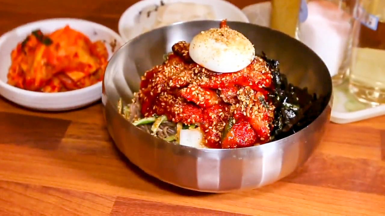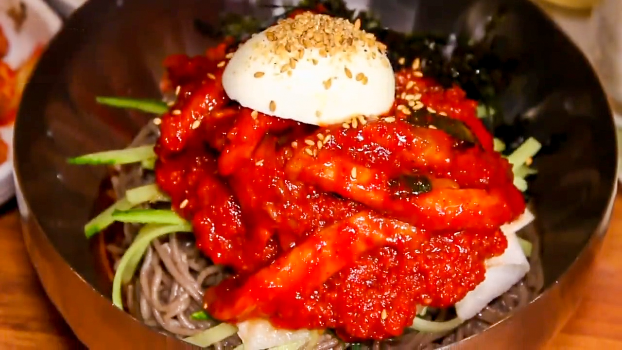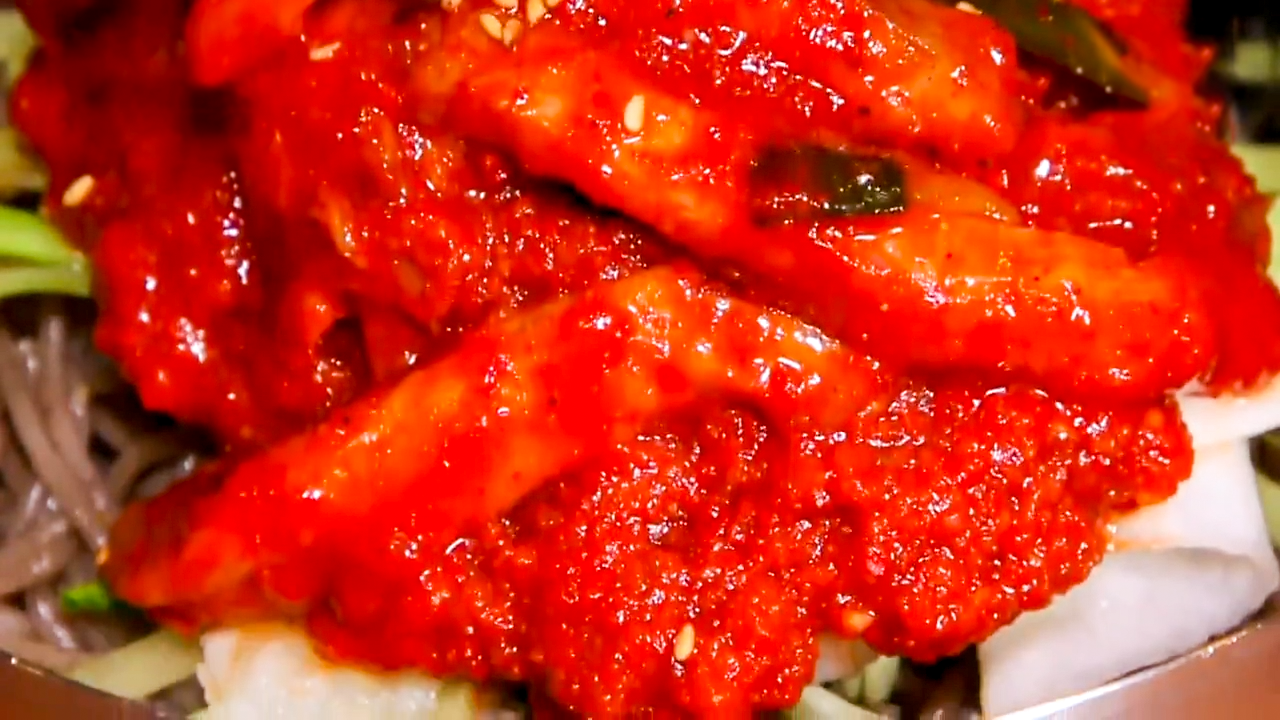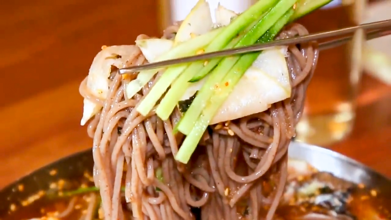 깔끔하고 칼칼한 양념이 잘 어우러져 입맛을 살려주고 메밀면의 특유의 식감이 젓가락질을 멈출 수 없게 만들어 한번 먹기 시작하면 계속 먹게 됩니다. 쫄깃하고 고소한 가자미회가 숙성이 아주 잘돼 꼬들꼬들한 맛이 아주 좋습니다.
