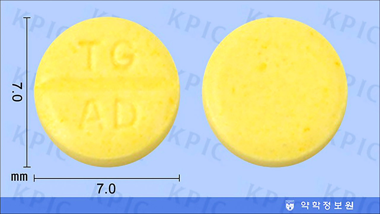 | 성상 | 노란색의 원형 정제 |
