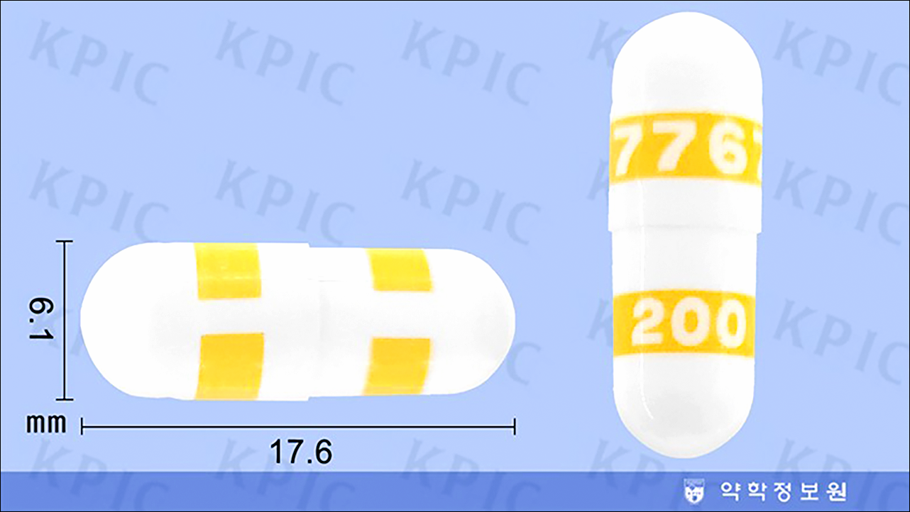 | 성상 | 흰색 내지 미황색의 분말이 충진된 상하 황색줄이 있는 흰색의 캡슐제 |