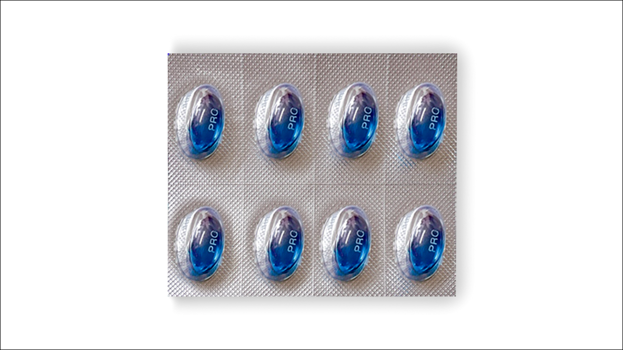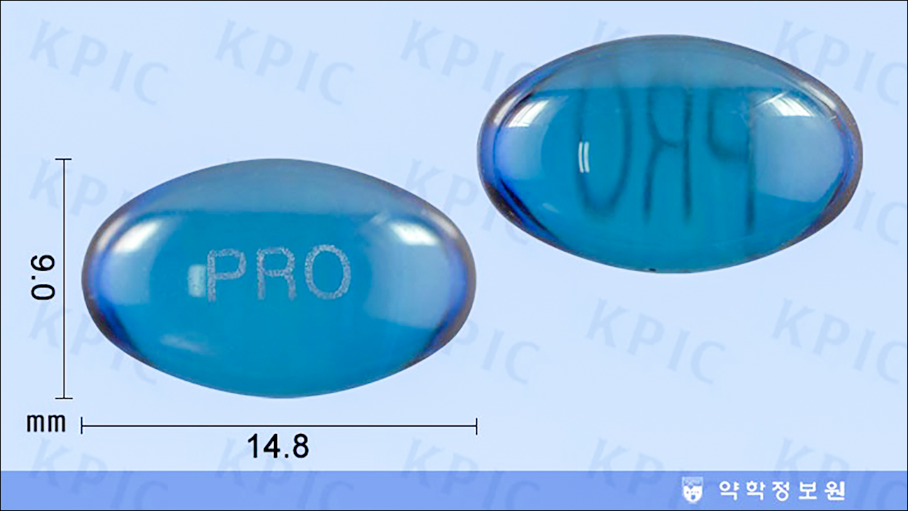 | 성상 | 무색의 투명한 액이 든 청색의 투명한 타원형 연질캡슐 |