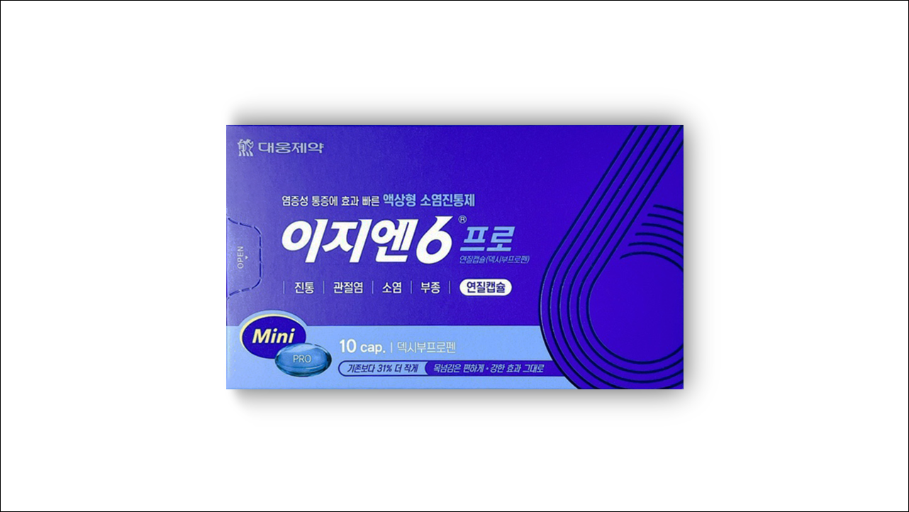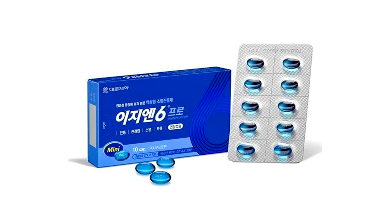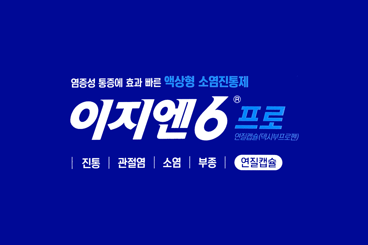 소염진통제 이지엔6 프로 연질캡슐 (EZN 6 Pro Soft Cap)에 대해서 알아보겠습니다. 해열, 진통, 소염 효능이 있는 비스테로이드성 소염진통제(NSAIDs)로 관절염, 류마티스관절염, 외상 및 수술 후 부종이나 염증, 염증, 통증, 발열을 수반하는 감염증, 근육통, 해열, 진통, 생리통 등에 사용되며 의사의 처방전이 없이도 약국에서 구입이 가능한 일반의약품입니다.