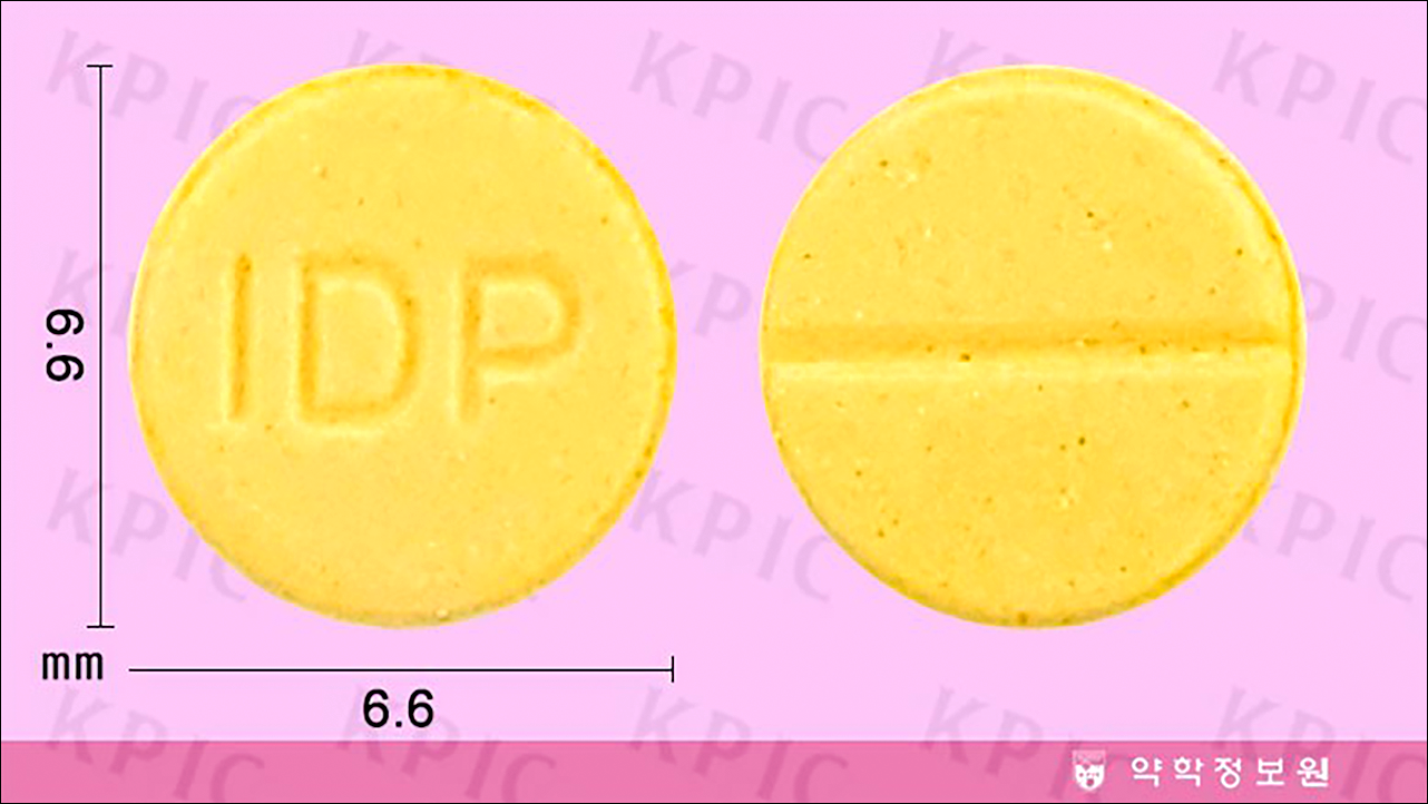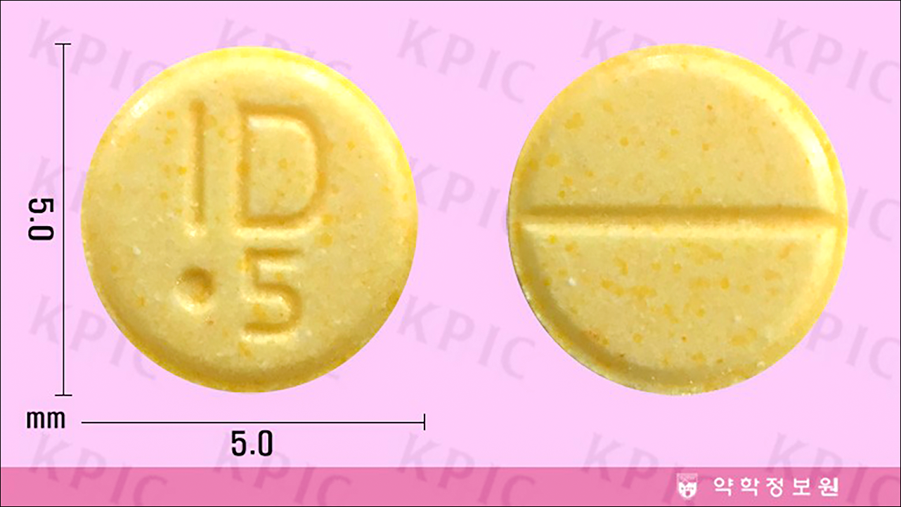 | 식별표기 | 앞 : D ·5(0.5mg) / IDP(1mg), 뒤 : 분할선 |