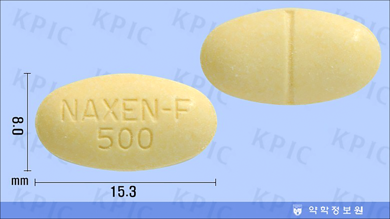 1. 나프록센 500mg이 함유되어 있습니다. 나프록센은 이부프로펜, 덱시부프로펜과 같은 비스테로이드성 소염진통제(NSAIDs)입니다. 염증, 통증, 발열을 일으키는 프로스타글란딘 합성(생성)하는 효소인 시클로옥시게나아제(COX-1, COX2)를 억제해 소염, 진통, 해열작용을 합니다.