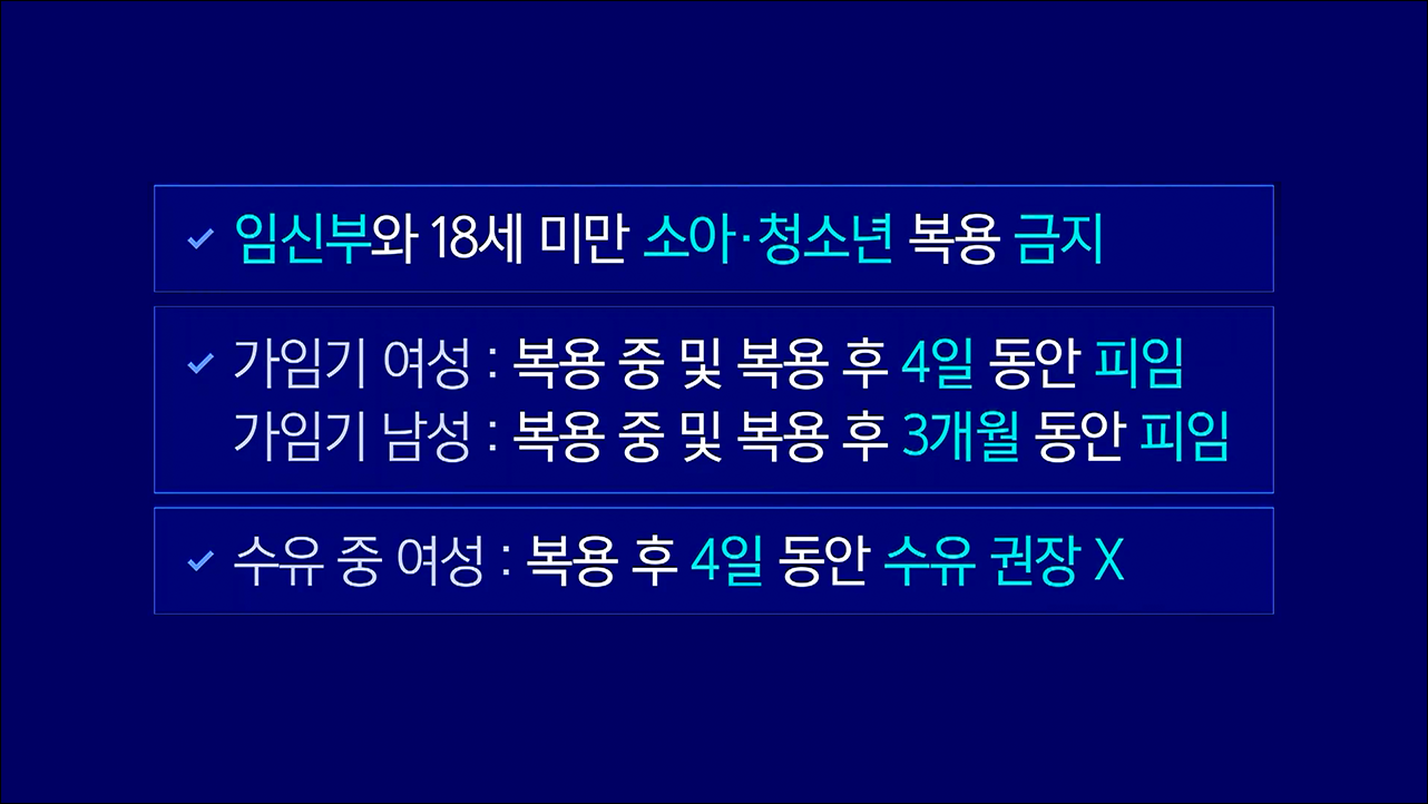 이 약은 임부와 만 18세 미만 소아·청소년 환자에게 사용이 승인되지 않았습니다.