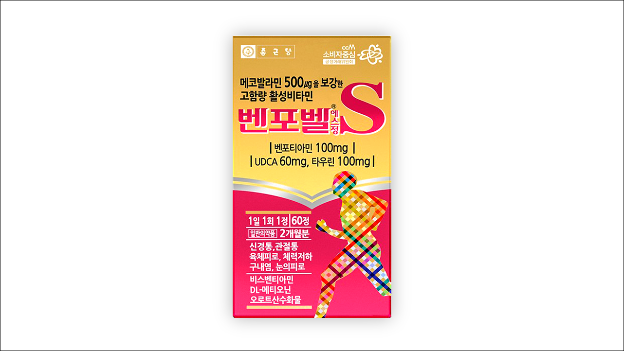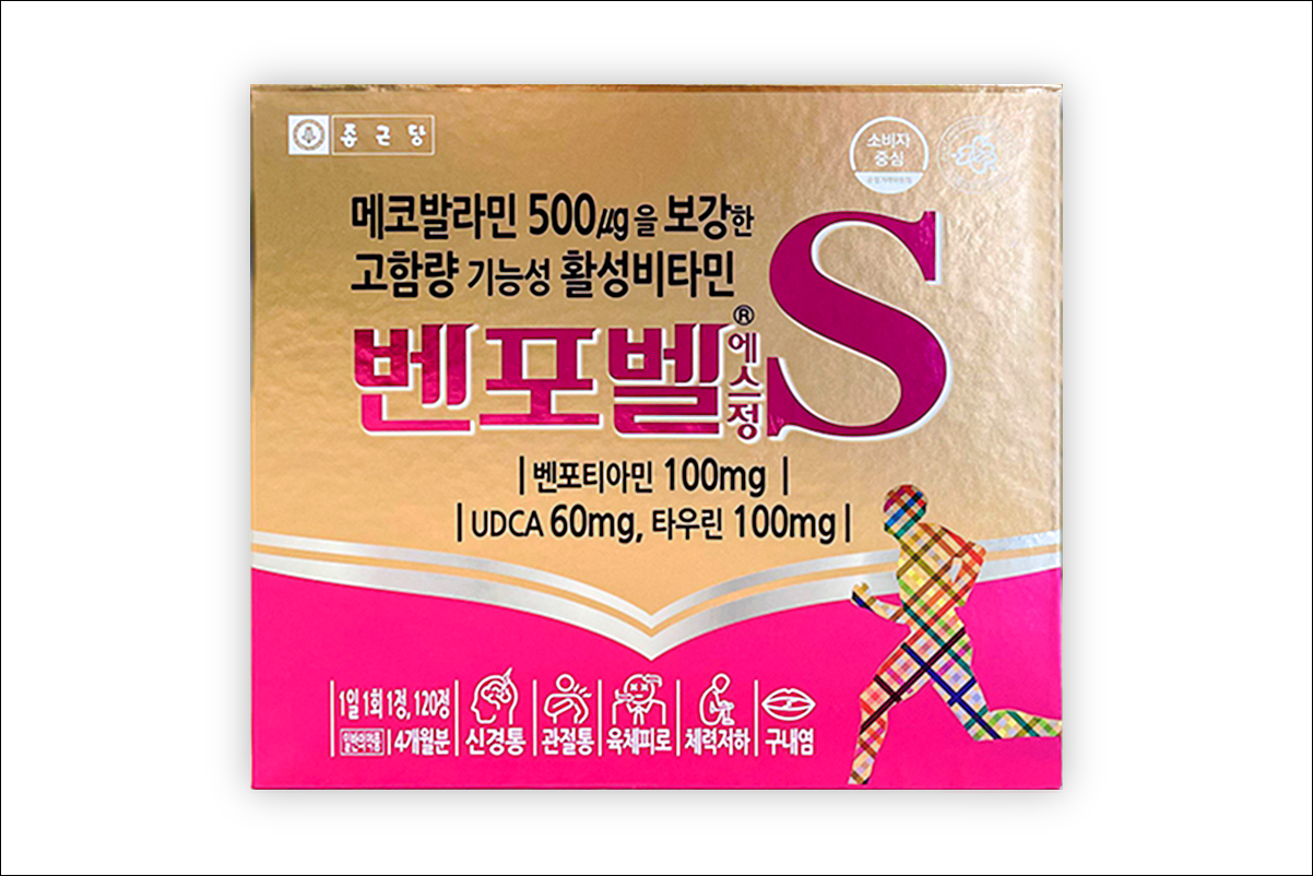 비타민제 벤포벨s 에스정 (Benfobell S Tab)에 대해서 알아보겠습니다. 고함량 비타민B군 제품으로 신경통, 근육통, 육체피로, 관절통, 요통, 어깨 결림, 병중, 병후 체력 저하, 구내염, 눈의 피로 등 효능이 있으며 의사의 처방전이 없어도 약국에서 구입이 가능한 일반 의약품입니다. 피로회복, 체력회복에 많이 추천되고 있는 영양제로 벤포티아민, 우루사, 타우린 등 비타민B군, 미네랄 성분, 항산화 성분, 생리활성 성분이 함유된 종합 비타민제입니다.