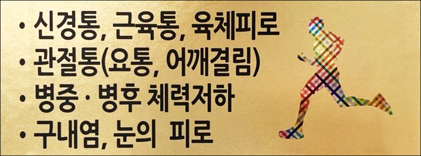 ② 다음 증상의 완화 : 신경통, 근육통, 관절통(요통, 어깨 결림 등), 구각염(입꼬리염), 구순염(입술염), 구내염(입안염), 설염(혀염), 습진, 피부염