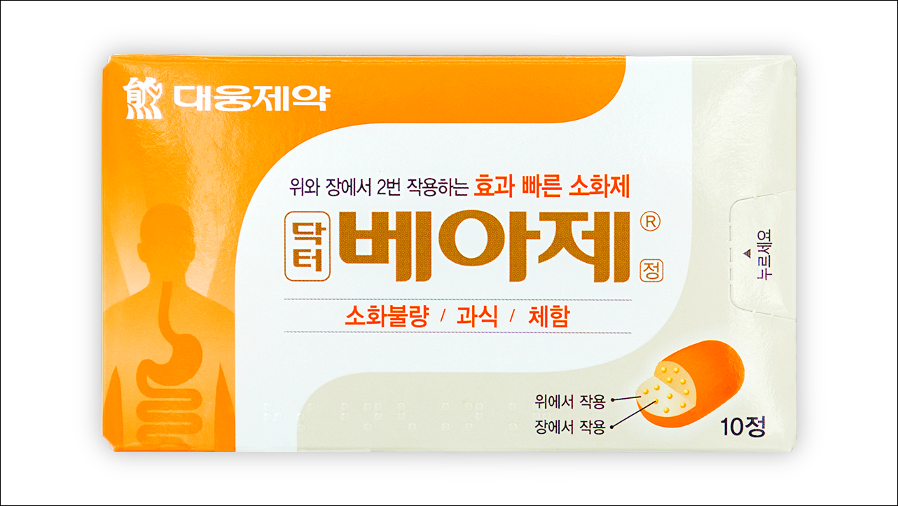 소화제 닥터베아제 (Dr. Bearse Tab)에 대해 알아보겠습니다. 소화불량, 과식, 체함, 복부 팽만감 등의 증상을 완화시키는데 효과가 좋으며 의사의 처방전이 없어도 약국이나 편의점에서 구입이 가능한 일반 의약품입니다. 부작용이 거의 없는 약으로 속이 불편할 때 복용하면 빠른 효과를 볼 수 있습니다. 위와 장에서 2번 작용하기 때문에 효과가 빠르고 좋습니다.