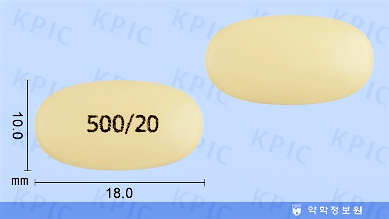 동일 성분이 함유된 의약품으로는 낙센에스정 500/20mg이 있습니다.