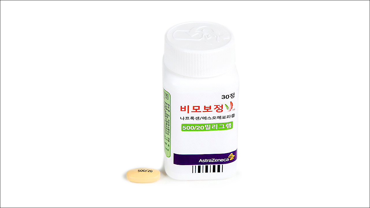 관절염 치료제 비모보정 500/20mg (Vimovo Tab. 500/20mg)에 대해서 알아보겠습니다. 비스테로이드성 소염진통제(NSAIDs)로 골관절염, 류마티스성 관절염, 강직성 척추염의 증상에 효과가 있는 약이며, 의사의 처방전이 있어야 구입이 가능한 전문 의약품입니다. 위장관계 부작용을 예방하는 성분이 함유되어 있어 다른 약들보다 위장장애가 적은 편입니다. 소염진통제 복용으로 위장장애를 겪는 경우 복용하면 도움이 될 수 있습니다.