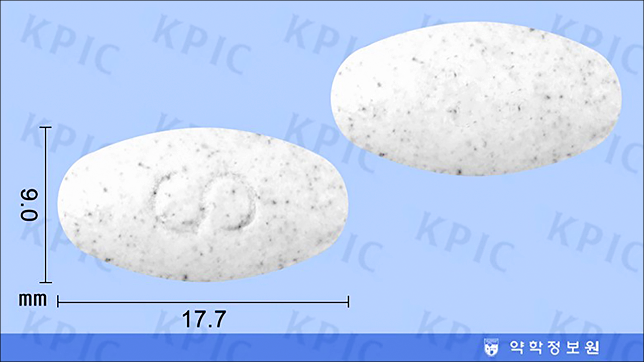 | 성상 | 진한 갈색의 반점이 있는 연한 백색의 장방형 필름코팅정제 |