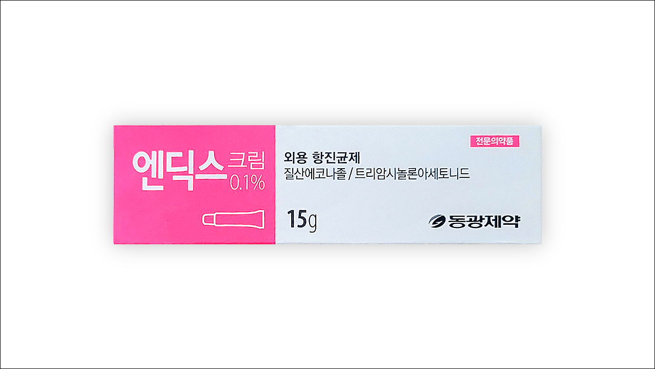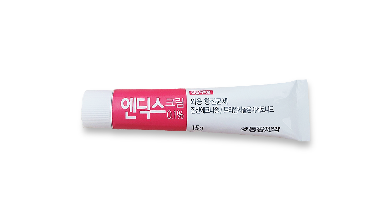 엔딕스크림에는 질산에코나졸 10mg/g, 트리암시놀론아세토니드 1mg/g이 함유되어 있습니다.