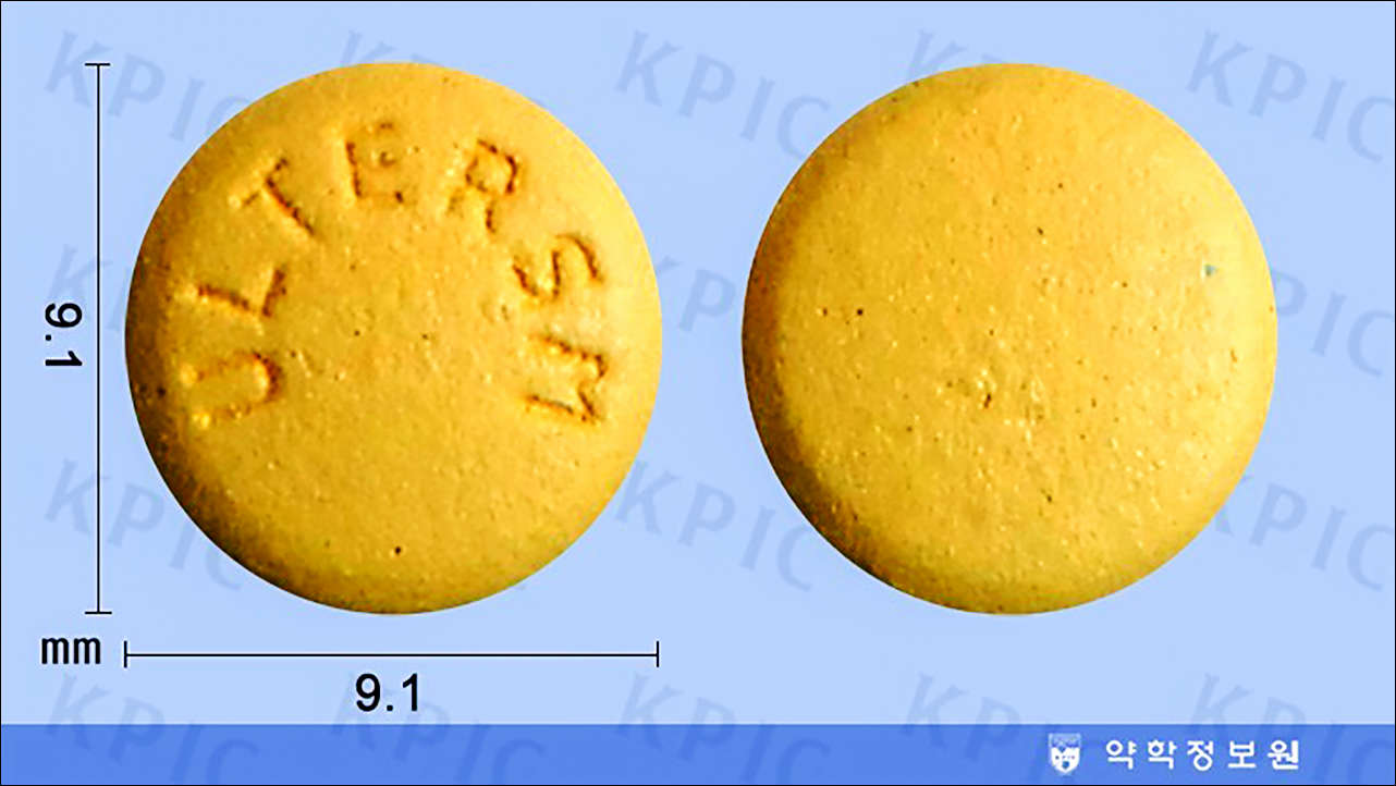 | 성상 | 노란색의 원형 필름코팅 서방정제 |