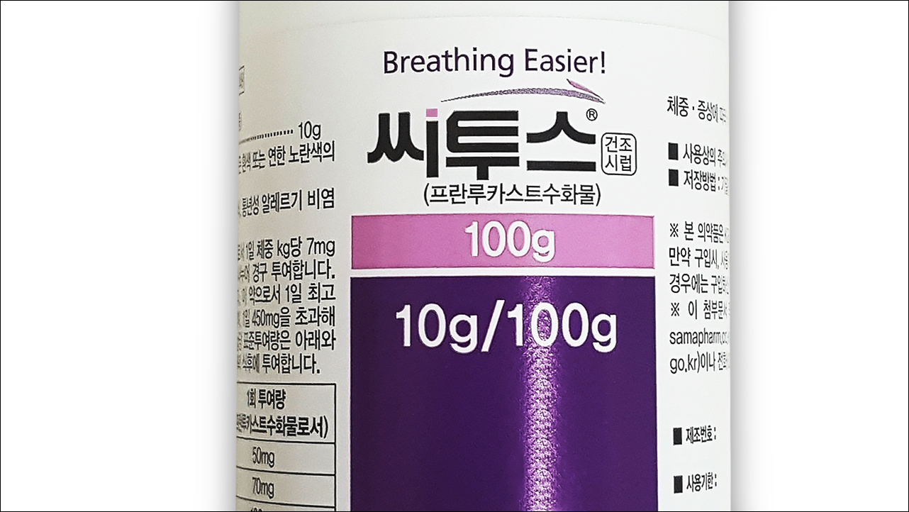 1. 씨투스건조시럽에는 프란루카스트수화물 100mg/g이 함유되어 있습니다. 프란루카스트수화물은 체내에서 기도 수축, 부종, 염증 등과 같이 과민반응을 일으키는 염증 매개물질 중 하나인 류코트리엔의 작용을 억제해 기관지를 확장하는 효능이 있어 천식과 알레르기 비염 증상을 완화해 줍니다.