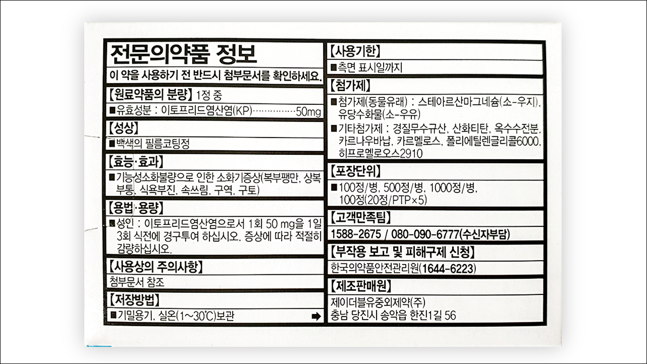 소화불량 치료제, 소화제 가나칸정 50mg (Ganakhan Tab. 50mg)에 대해서 알아보겠습니다. 기능성 소화불량 증상에 효과가 있는 약으로 의사의 처방전이 있어야 약국에서 구입이 가능한 전문 의약품입니다. 위장관 운동을 조절해 복부팽만, 상복부통, 식욕부진, 속쓰림, 구역, 구토 등의 증상을 완화해줍니다.
