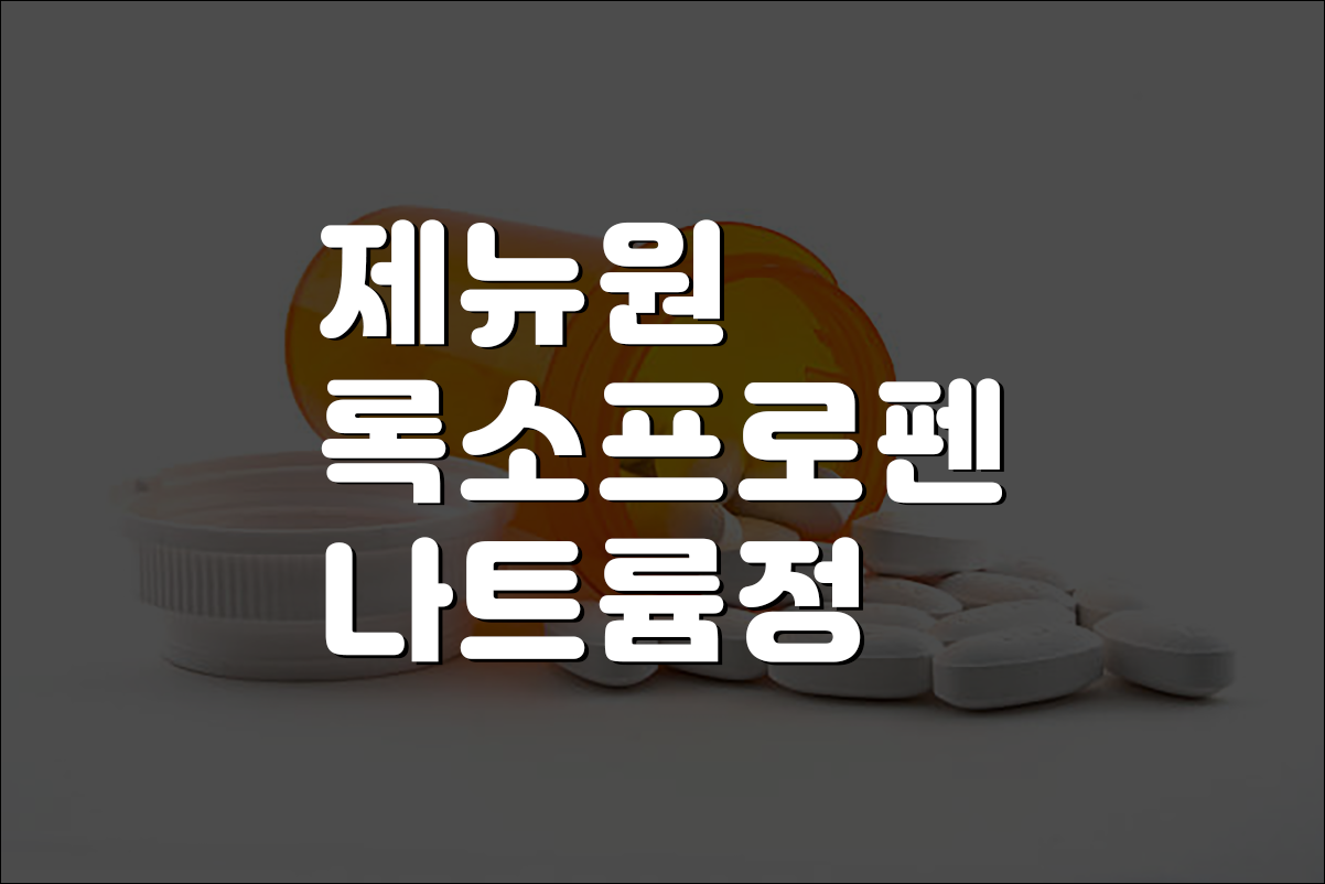 소염진통제 제뉴원록소프로펜나트륨정(Genuone Loxoprofen Sodium Tab. 60mg)에 대해서 알아보겠습니다. 비스테로이드성 소염진통제 (NSAIDs)로 의사의 처방전이 있어야 약국에서 구입이 가능한 전문 의약품입니다. 만성 류머티즘 관절염, 골관절염(퇴행관절염), 수술후, 외상후 및 발치 후의 소염ㆍ진통, 급성 상기도염 해열, 진통 등의 효과가 있습니다.
