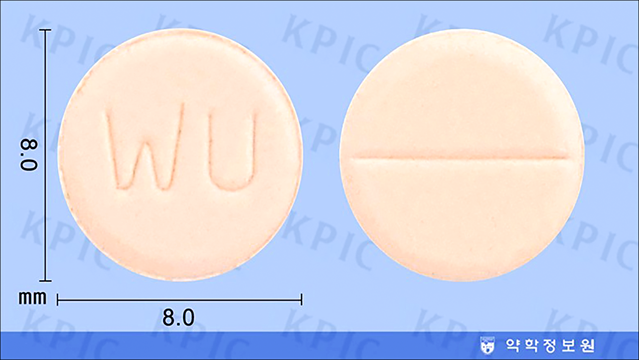 | 성상 | 담홍색 원형 정제 |