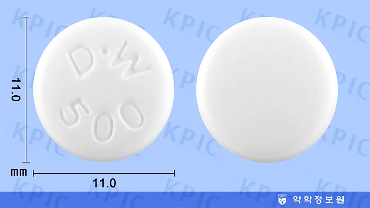 ① 일반적인 개시 용량은 1일 1회 500mg이며 식사 중 또는 식사 종료 후 복용합니다.
