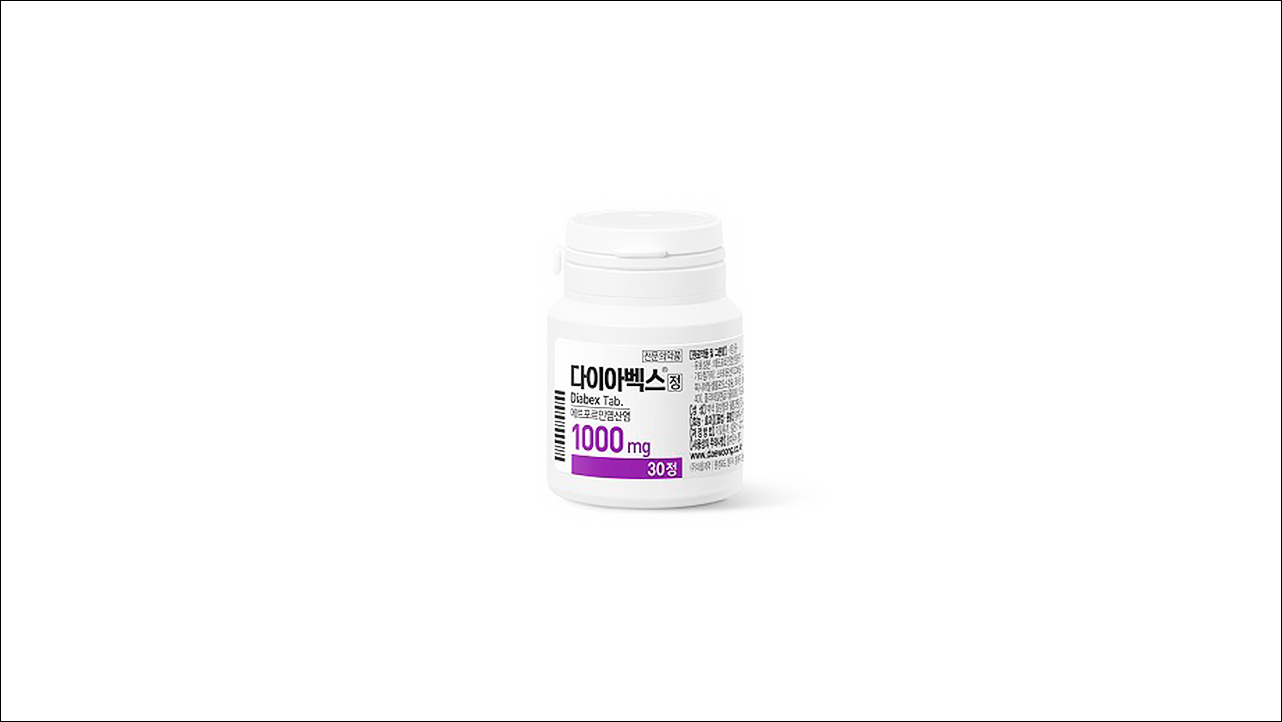 당뇨약 다이아벡스정 500mg(Diabex Tab)에 대해서 알아보겠습니다. 제2형 당뇨병 환자의 1차 치료제로 의사의 처방전이 있어야 약국에서 구입이 가능한 전문 의약품입니다. 포도당 생성과 흡수를 저해하며 인슐린 저항성을 개선해 혈당을 낮춰주는 혈당강하제입니다.