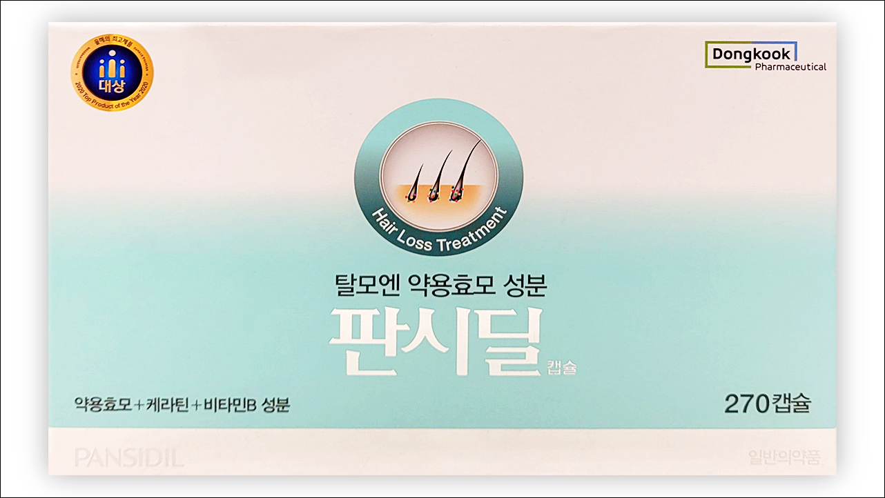 탈모 치료제 판시딜 캡슐 (Pansidil Cap)에 대해서 알아보겠습니다. 탈모 증상에 효과가 있는 약으로 의사의 처방전이 없어도 약국에서 구입이 가능한 일반 의약품입니다. 탈모는 스트레스, 호르몬 이상, 유전적 원인 등 다양한 원인에 의해서 유발되는 데 이약은 탈모로 인해 손상된 모발 치료에 효과가 있으며 더불어 손톱의 발육 부진에도 효과가 있습니다.