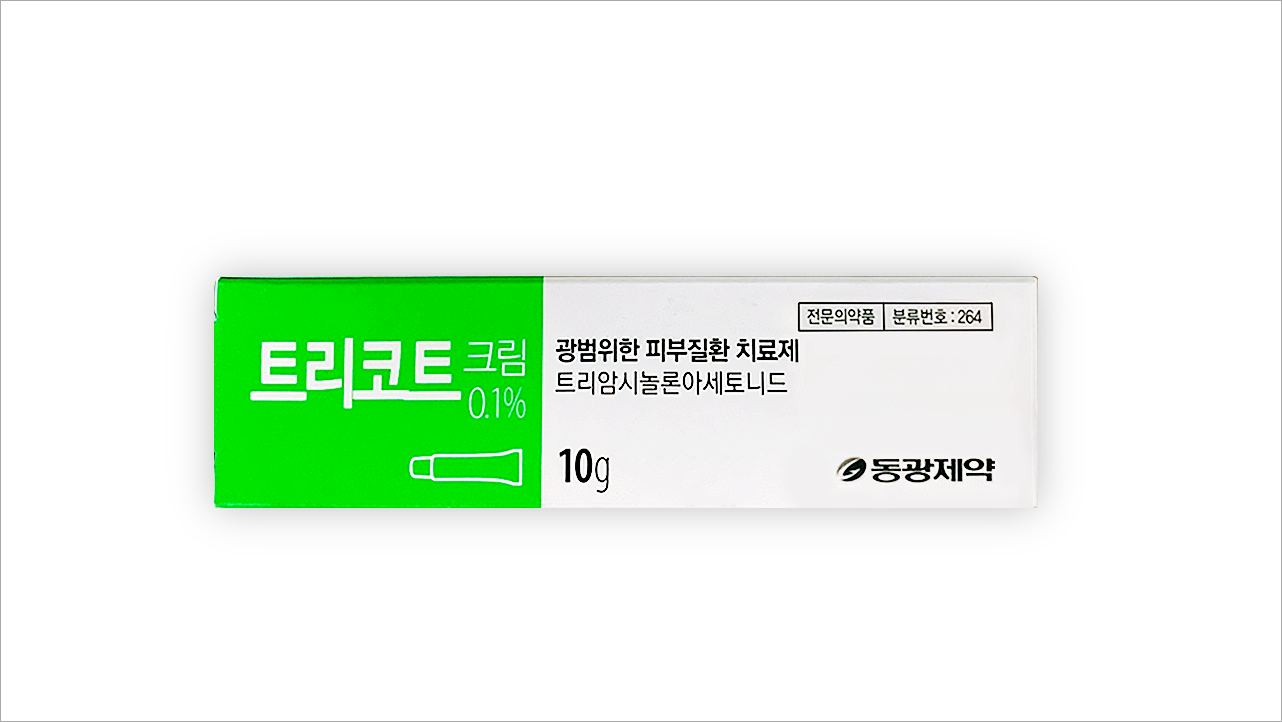 피부질환 치료제 트리코트크림 0.1% 10g(Tricort Cream 0.1% 10g)에 대해서 알아보겠습니다. 광범위한 피부질환 치료제로 의사의 처방전이 있어야 약국에서 구입이 가능한 전문 의약품입니다. 습진, 접촉피부염, 아토피피부염, 피부가려움, 동상, 벌레 물린데, 구진두드러기 등 다양한 피부질환에 빠른 효과가 있는 약입니다.