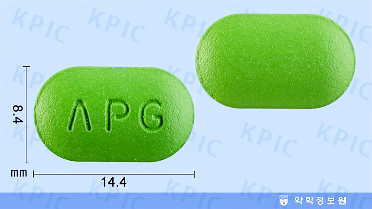 | 성상 | 장방형의 장용피를 한 연녹색의 필름코팅정 |