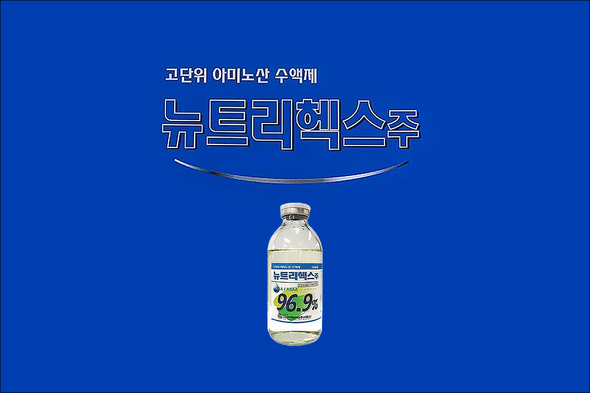 아미노산 수액제 뉴트리헥스주(Nutri Hex Injection)에 대해서 알아보겠습니다. 단백아미노산제제로 의사의 처방이 있어야 투여가 가능한 전문 의약품입니다. 떨어진 기력을 회복하고 부족한 영양을 보충하기 위해 자주 사용되는 영양제 주사입니다.