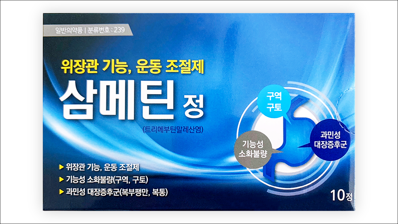 위장관 운동 조절제 삼메틴정(Sammetin Tab)에 대해서 알아보겠습니다. 각종 소화불량 증상 치료에 사용되는 위장운동 조절제, 위장운동 촉진제로 의사의 처방전이 없어도 약국에서 구입이 가능한 일반 의약품입니다. 위장관 운동을 조절하고, 경련을 완화시킴으로써 소화기능 이상으로 인한 각종 증상을 완화시켜 주는 약입니다.