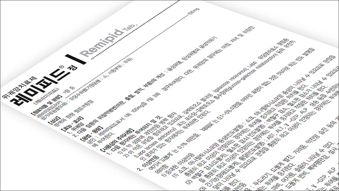 위염, 위궤양 치료제 레미피드정(Remipid Tab)에 대해서 알아보겠습니다. 소화성궤양용제(위점막 보호제, 위염 치료제)로 의사의 처방전이 있어야 약국에서 구입이 가능한 전문 의약품입니다. 위점막을 보호하고, 손상된 점막조직의 재생을 촉진하는 위점막 보호제입니다. 위궤양, 급성위염, 만성위염에 따른 위점막 병변 치료에 사용합니다.