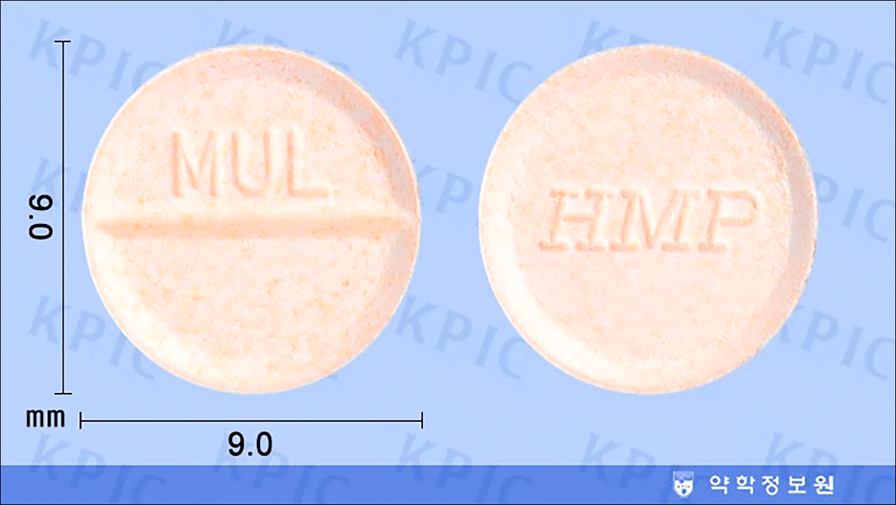 | 성상 | 연한 노란 분홍색의 원형정제 |