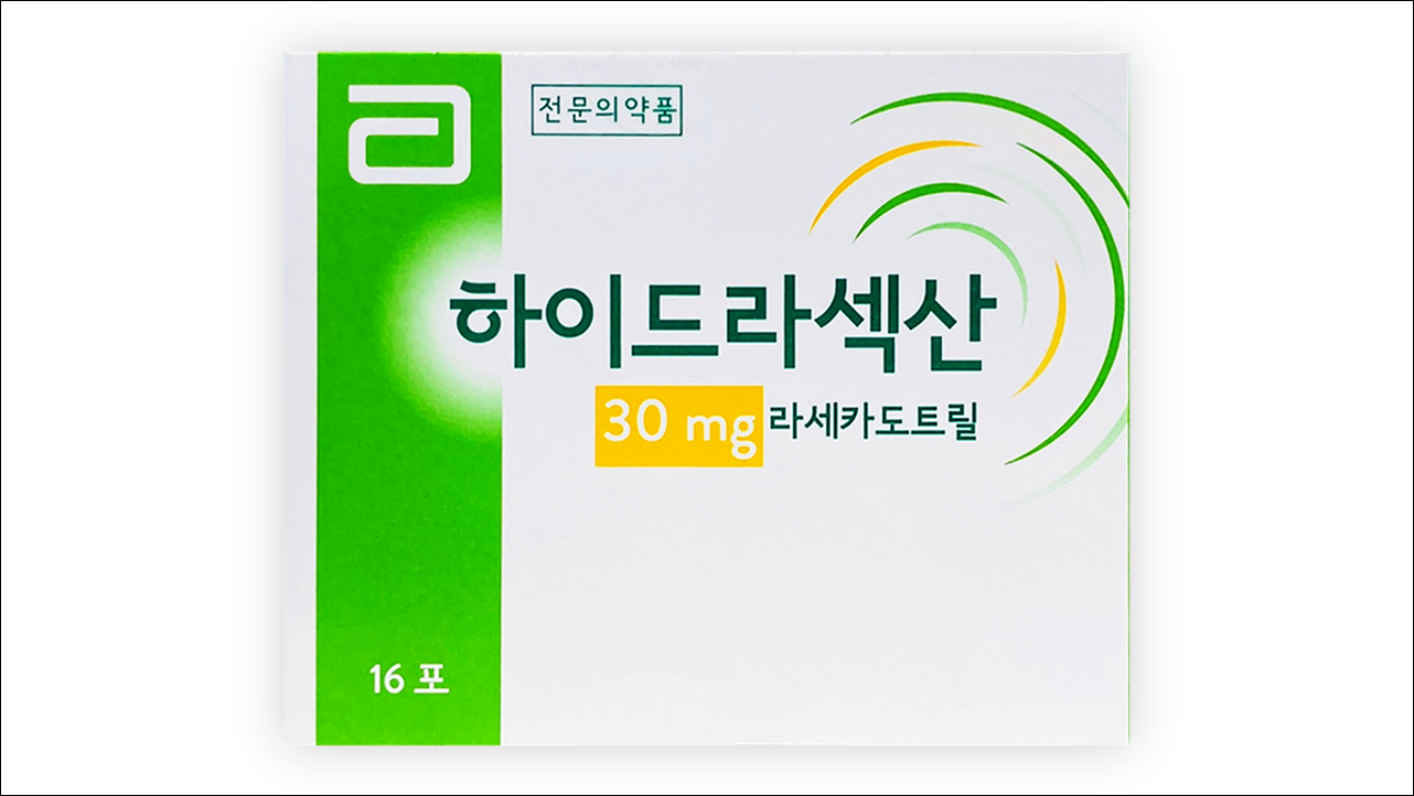하이드라섹산에는 라세카도트릴이 함유되어 있으며, 용량에 따라 10mg/g, 30mg/3g이 있습니다. 라세카도트릴은 급성 설사에 사용하는 약으로 장내에서 엔케팔리나제 효소를 억제해 엔케팔린이라는 물질의 작용을 극대화시켜 설사 증상을 개선하는 분비억제제입니다. 물과 전해질이 장으로 분비되는 것을 감소시켜 설사를 치료하는 약입니다. 안전성이 뛰어나고, 대변량과 배변 횟수를 감소시키며, 변비를 일으키지 않는 장점이 있습니다.