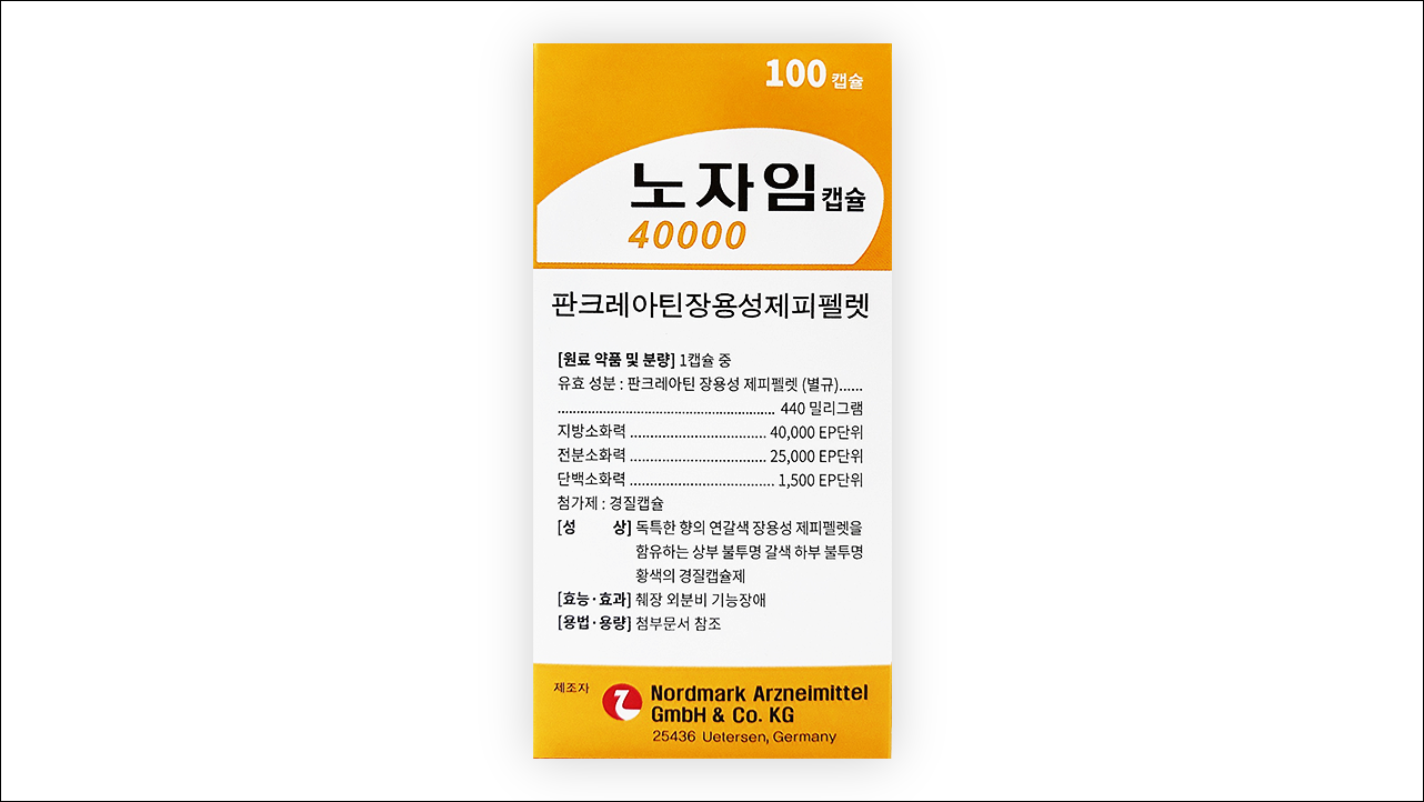 노자임캡슐(NORZYME CAP)에 대해서 알아보겠습니다. 건위소화제로 의사의 처방전이 없어도 약국에서 구입이 가능한 일반 의약품입니다. 십이지장에서 음식물의 소화를 촉진시켜 주는 췌장효소제제입니다. 췌장염으로 인한 소화불량, 위부팽만감 등에 효과가 있으며, 췌장에서 분비하는 소화효소(아밀라제, 라파아제, 프로테아제)등을 함유한 약입니다.