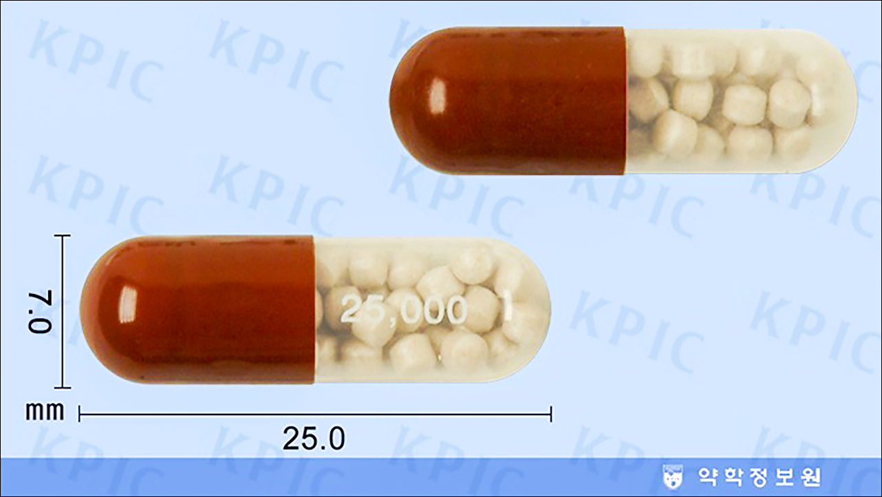 1일 3회, 1회 1~2 캡슐(지방소화력단위 25,000~50,000EP단위)을 식사 중 충분한 물과 함께 씹지 않고 복용합니다.