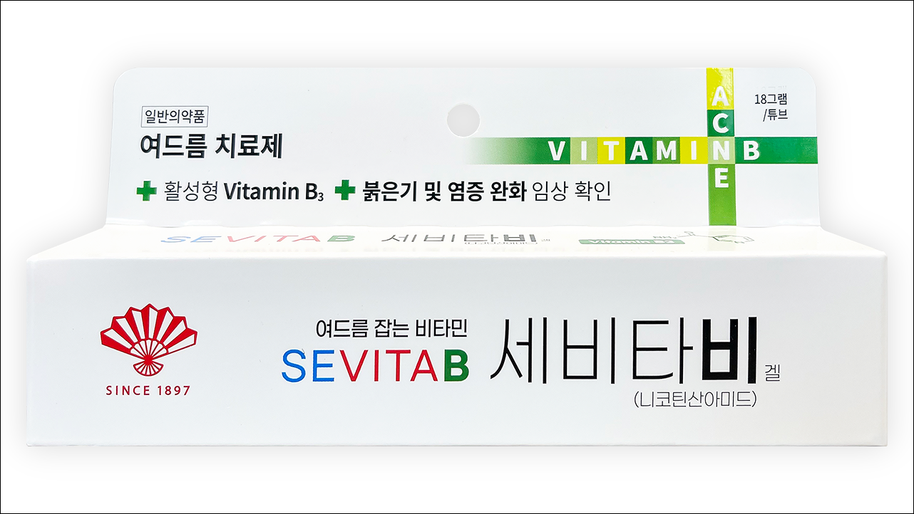 여드름 치료제 세비타비겔(Sevita B Gel)에 대해서 알아보겠습니다. 기생성 피부질환용제로 의사의 처방전이 없어도 약국에서 구입이 가능한 일반 의약품입니다. 여드름 잡는 비타민B3 제제로서 항염증작용을 나타내어 여드름을 치료하는 약입니다. 가벼운 여드름, 염증이 시작된 경우에 부담 없이 사용할 수 있습니다.