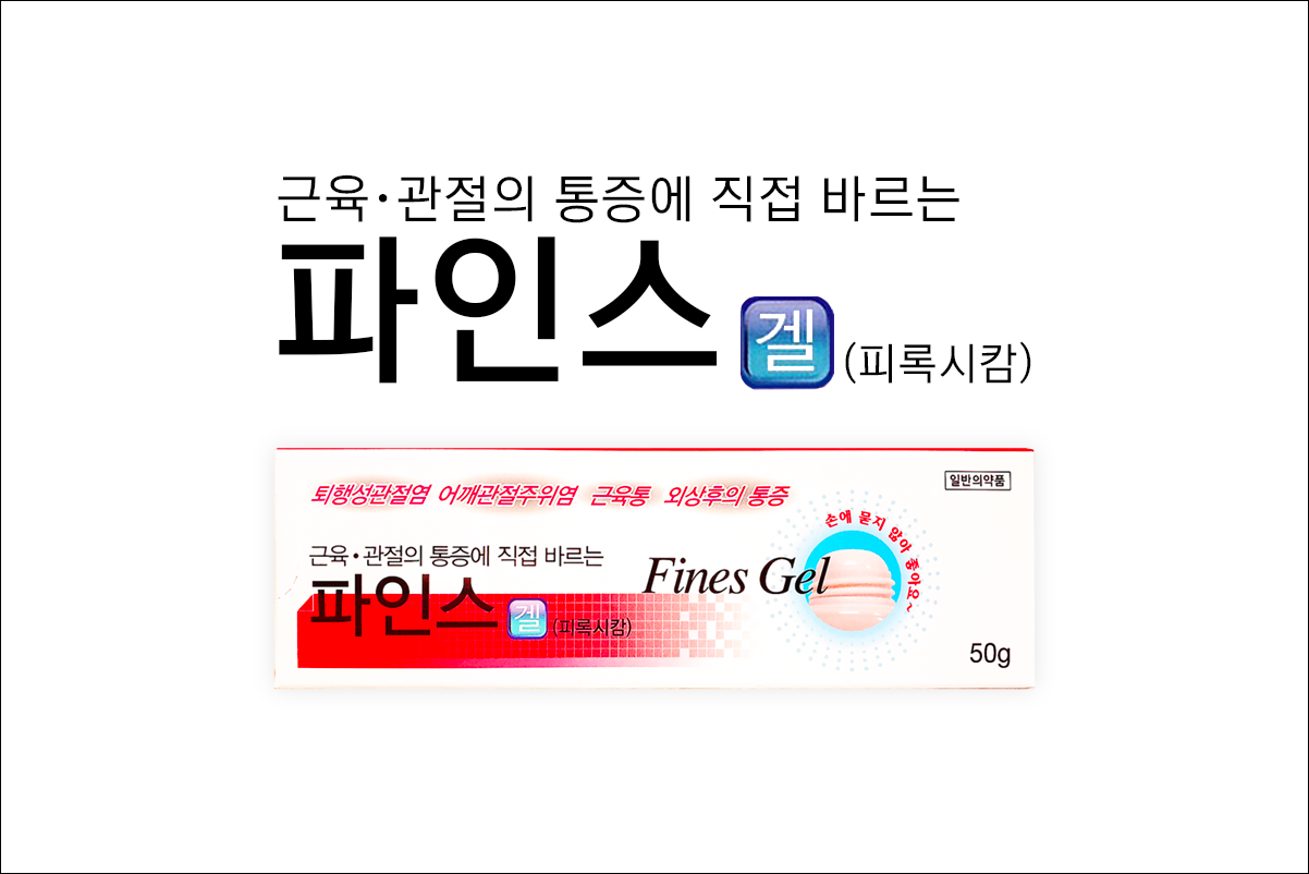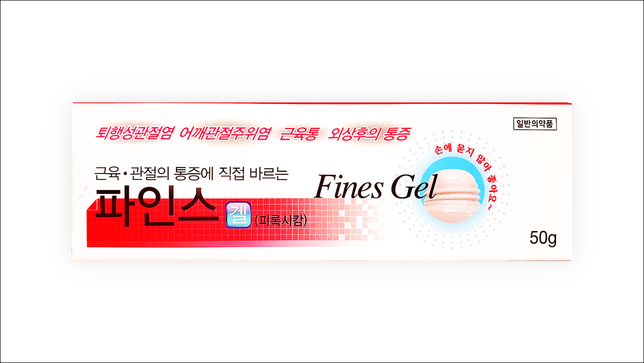 소염 진통제 파인스겔(Fines Gel)에 대해서 알아보겠습니다. 바르는 파스(비스테로이드성 소염진통제 NSAIDs)로 의사의 처방전이 없어도 약국에서 구입이 가능한 일반 의약품입니다. 염증을 완화시키고, 통증을 해소하는 약입니다. 퇴행성관절염, 어깨관절주위염, 근육통, 외상 후 통증 등에 사용합니다.