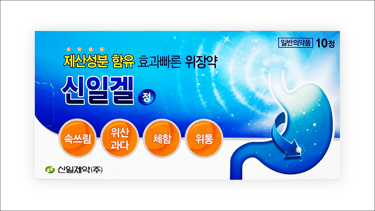 제산제 신일겔정(Sinil Gel Tab)에 대해서 알아보겠습니다. 위산과다, 속 쓰림, 위부불쾌감, 체함, 구역, 신트림 등 다양한 위장장애 증상을 치료하는 소화기관용약(제산제)으로로 의사의 처방전이 없어도 약국에서 구입이 가능한 일반 의약품입니다. 위산을 중화하고, 펩신(단백분해효소)의 작용을 감소시킴으로써 위내 통증 및 궤양형성을 방지하는 약입니다.