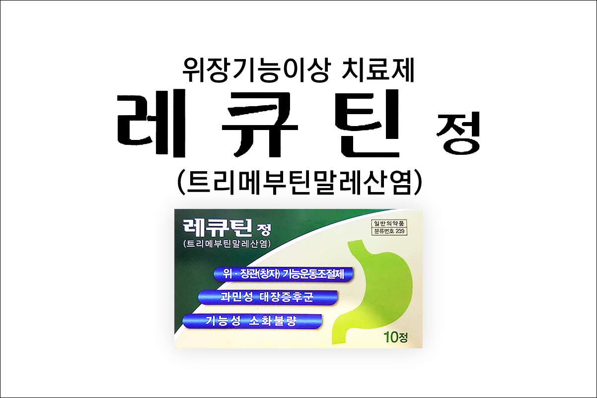 1. 레큐틴정에는 트리메부틴말레산염 100mg이 함유되어 있습니다. 트리메부틴말레산염은 위장관 평활근에 작용해 위 배출을 촉진하고 장 수축성을 조절하는 약입니다. 위장관 운동이 항진(빠르게)된 경우나 저하(느리게)된 경우 모두에 작용해 위장관 운동을 정상화시켜 줍니다. 위장 운동이 느려진 경우에는 빠르게 만들어주고 갑자기 빨라진 경우에는 느리게 만들어 줍니다.