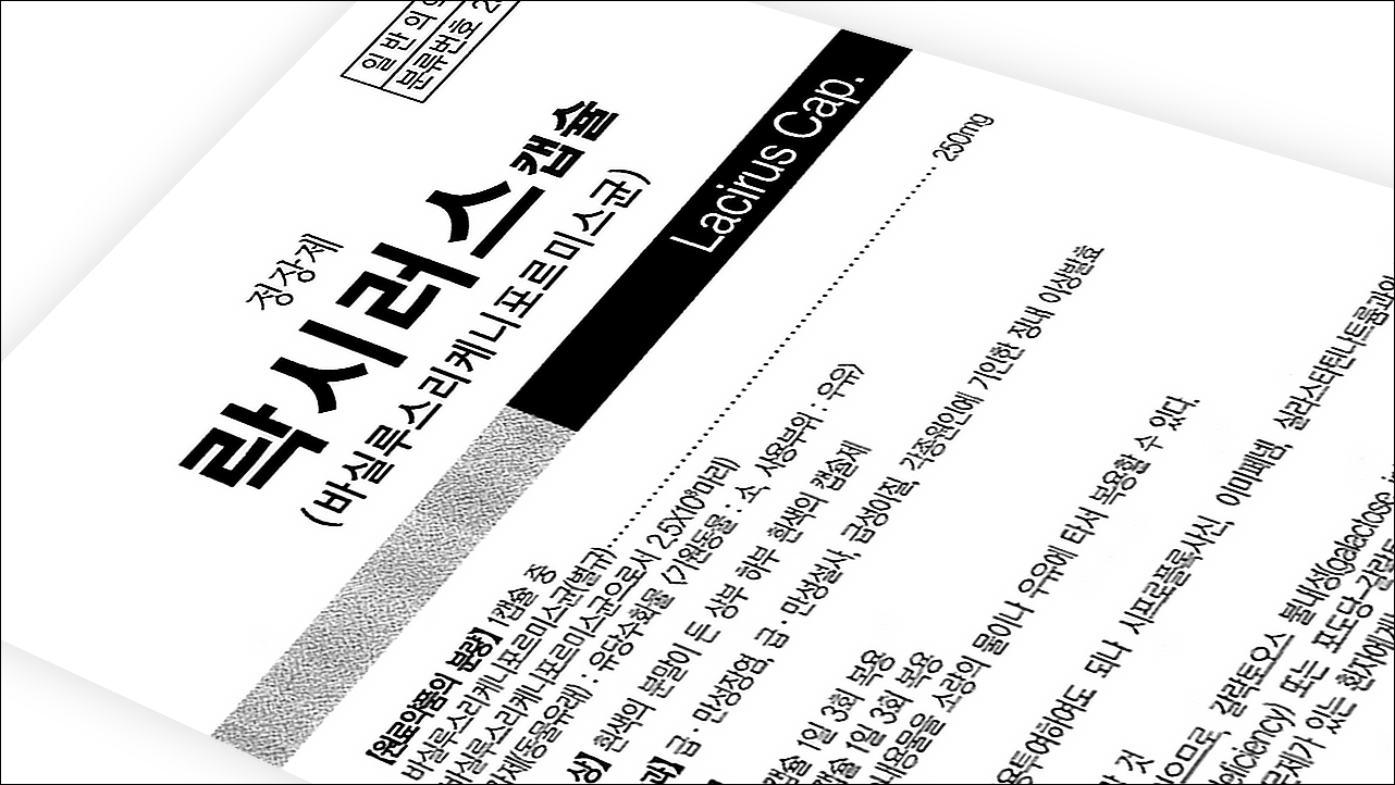 설사약 락시러스캡슐(Lacirus Cap)에 대해서 알아보겠습니다. 생균 정장제로 의사의 처방전이 없어도 약국에서 구입이 가능한 일반 의약품입니다. 장내 세균총을 정상화함으로써 장내 균총 이상에 의한 여러 증상을 개선하는 약입니다.