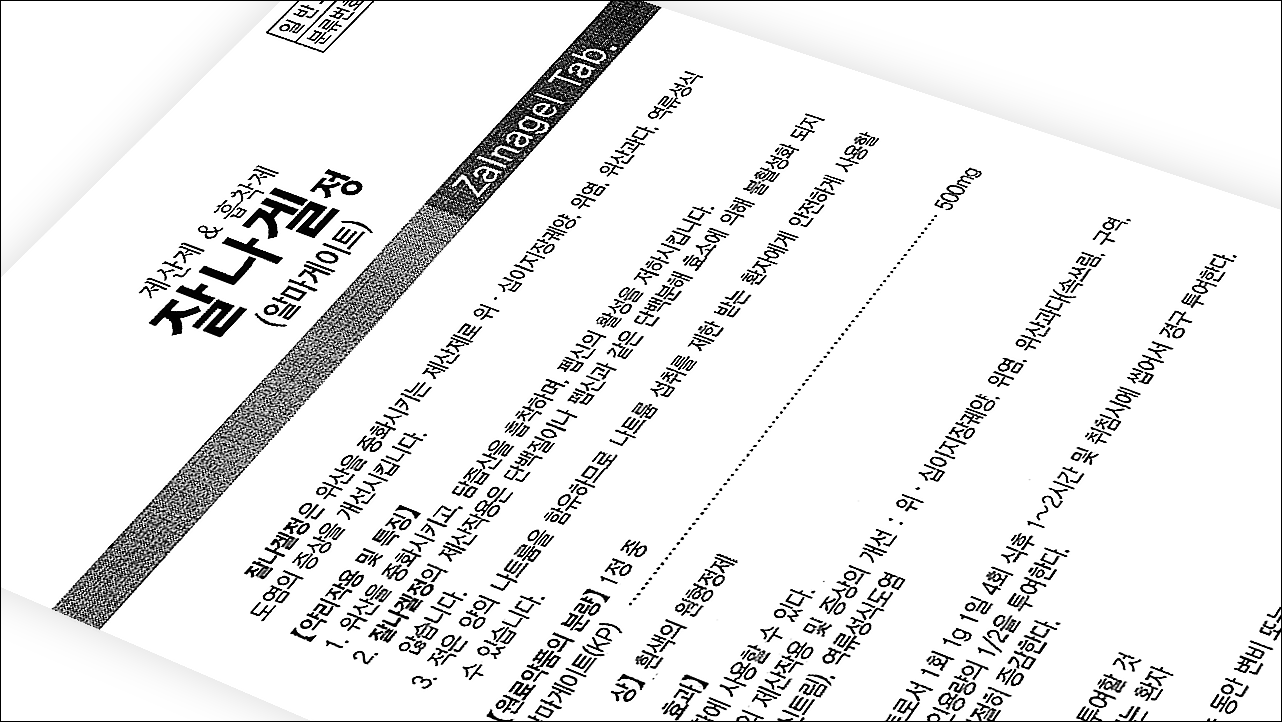 제산제 잘나겔정(Zalnagel Tab)에 대해서 알아보겠습니다. 위산을 중화하여 속 쓰림을 완화하고, 위점막을 보호하는 제산제로 의사의 처방전이 없어도 약국에서 구입이 가능한 일반 의약품입니다. 위산을 중화하고, 펩신(단백분해효소)의 작용을 감소시킴으로써 위내 통증 및 궤양형성을 방지하는 약입니다.