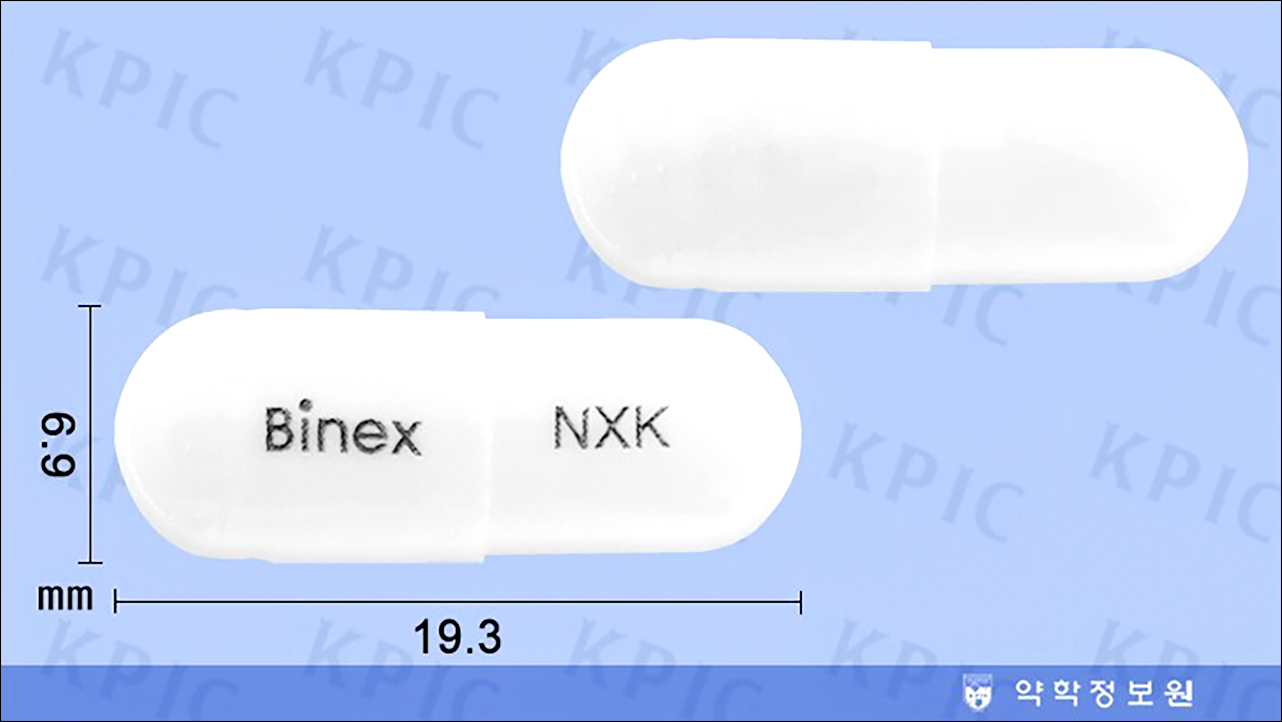| 성상 | 흰색의 분말이 든 상부 하부 흰색의 캡슐제 |