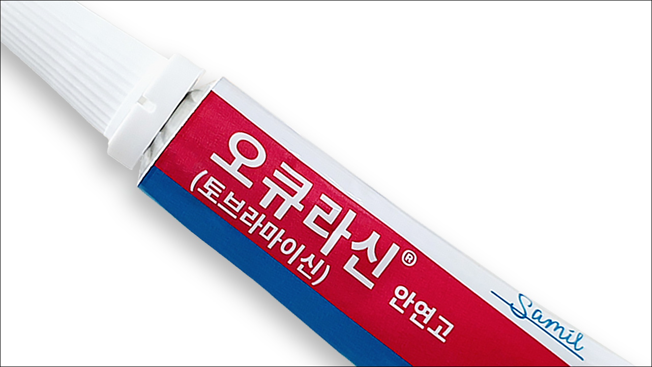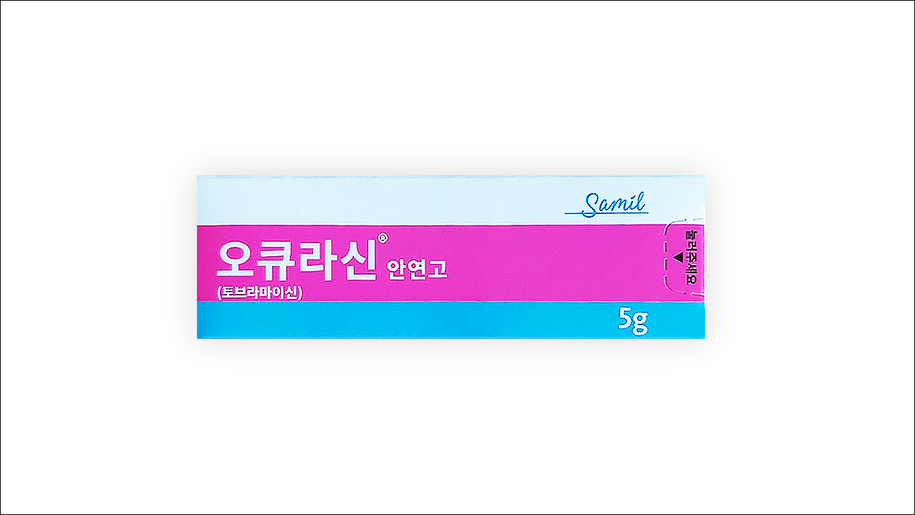 오큐라신안연고에는 토브라마이신 3mg/g이 함유되어 있습니다. 토브라마이신은 세균의 단백질 합성을 저해함으로써 항균작용을 나타내는 항생제입니다. 주사제 외에는 안약 제형으로만 시판되고 있어 다래끼, 결막염 등 안과 질환에 사용됩니다.