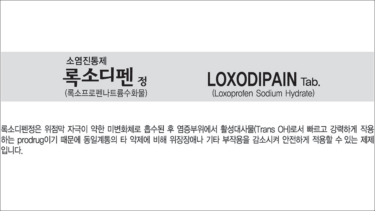 소염진통제 록소디펜정(Loxodifen Tab)에 대해서 알아보겠습니다. 비스테로이드성 소염진통제(NSAIDs)로 의사의 처방전이 있어야 약국에서 구입이 가능한 전문 의약품입니다. 염증을 완화시키고, 통증을 해소하는 약입니다.
