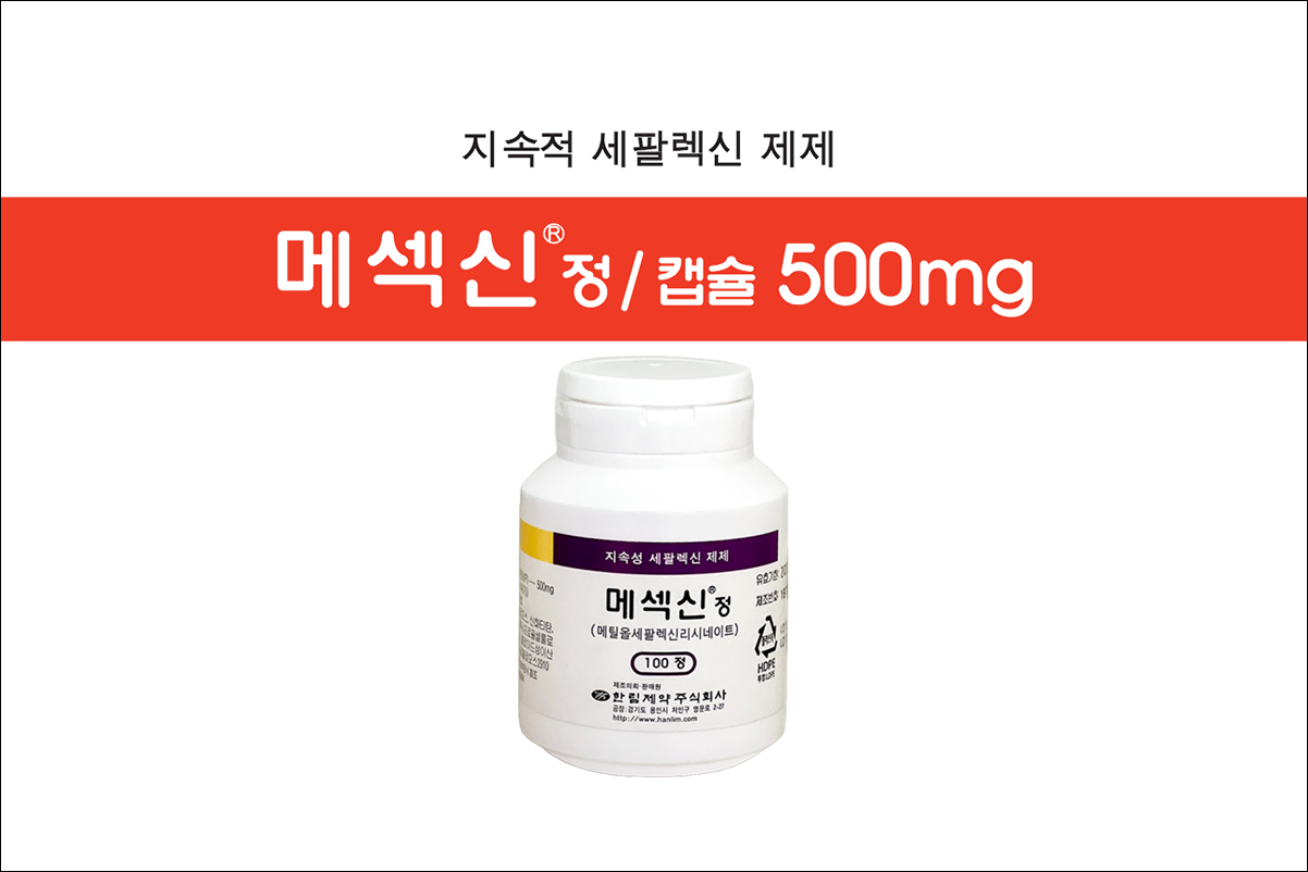 항생제 메섹신정(Mexesin Tab)에 대해서 알아보겠습니다. 1세대 세팔로스포린계 항생제로 의사의 처방전이 있어야 약국에서 구입이 가능한 전문 의약품입니다. 항균작용을 나타냄으로써 세균에 의한 각종 감염증을 치료하는 약입니다.