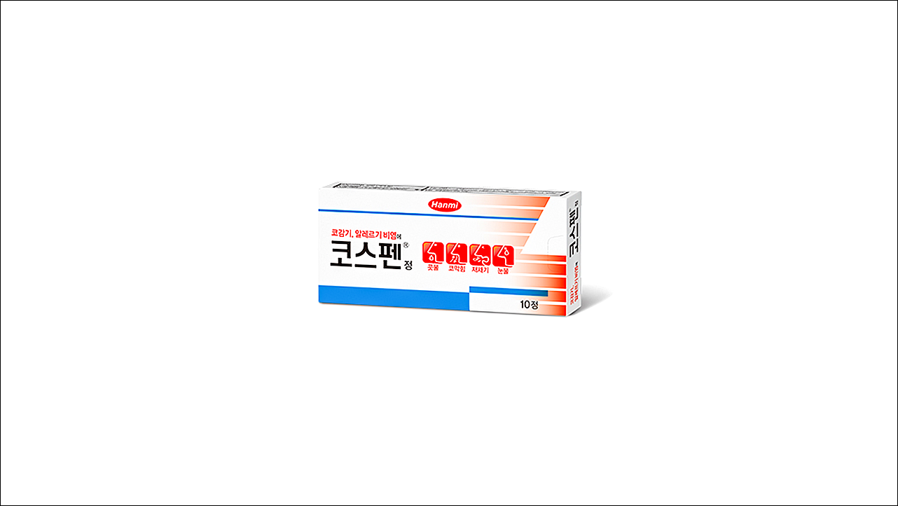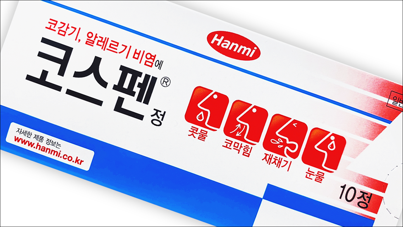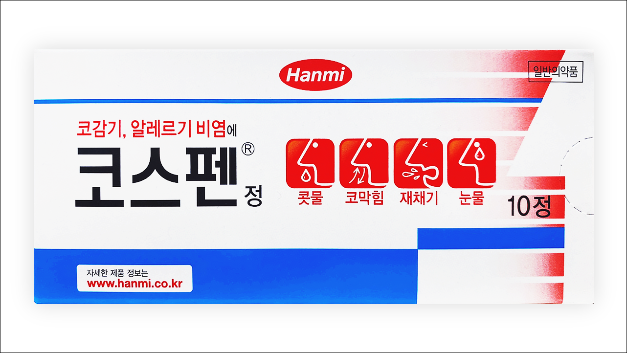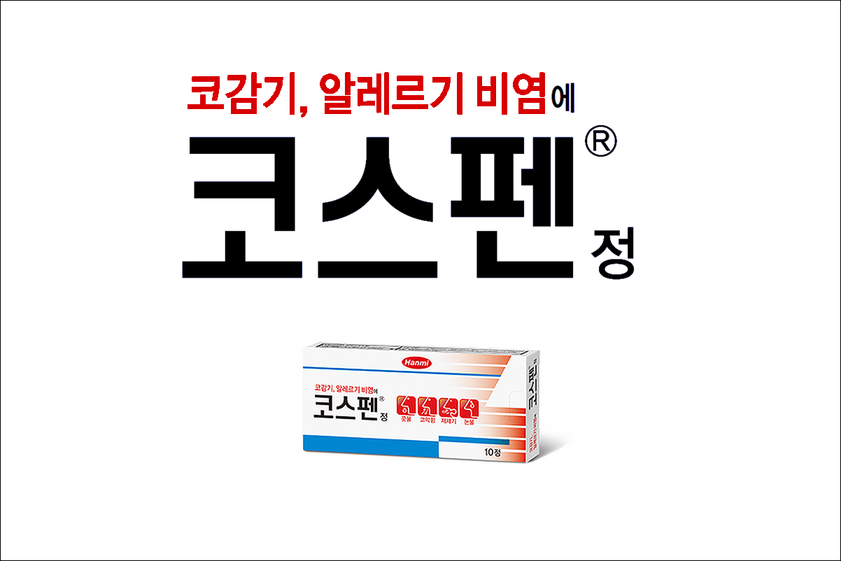 코감기, 알레르기 비염 치료제 코스펜정(Cospen Tab)에 대해서 알아보겠습니다. 항히스타민제로 의사의 처방전이 없어도 약국에서 구입이 가능한 일반 의약품입니다. 콧속 혈관을 수축하고, 항알레르기 작용을 나타내어 비염 증상을 개선하는 약입니다. 코감기, 알레르기, 부비동염, 기관지염 등과 같은 호흡기 질환으로 인한 증상 완화 효과가 있습니다.