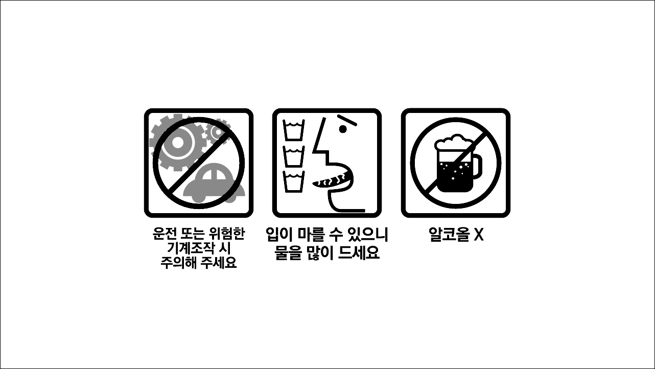 1. 졸음이 올 수 있으므로 운전, 위험한 기계조작 시 주의합니다.