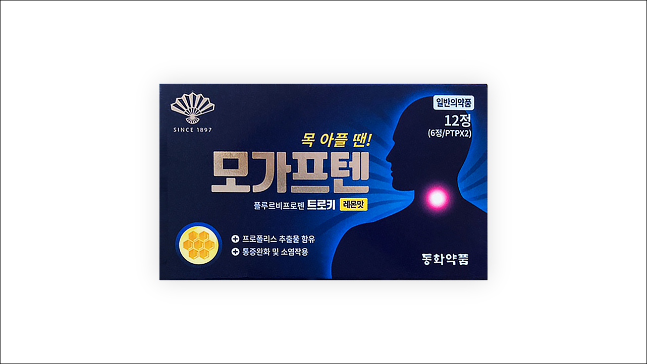 소염진통제 모가프텐 트로키(Mogaften Troche)에 대해서 알아보겠습니다. 목 아플 때 먹는 약(비스테로이드성 소염진통제)으로 의사의 처방전이 없어도 약국에서 구입이 가능한 일반 의약품입니다. 간편하게 녹여 먹는 트로키 제형이며, 항염ㆍ진통작용으로 인후염의 증상을 치료하는 약입니다.