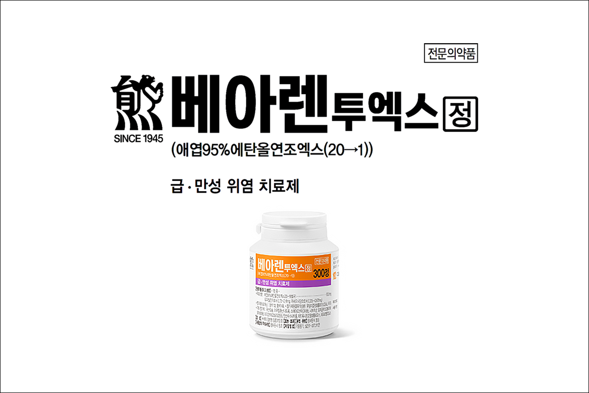 위염약 베아렌투엑스정(Bearen 2X Tab)에 대해서 알아보겠습니다. 생약성분의 위장질환 치료제(소화성궤양용제)로 의사의 처방전이 있어야 약국에서 구입이 가능한 전문 의약품입니다. 위점막을 보호하고, 손상된 점막조직의 재생을 촉진함으로써 위염을 예방 및 치료하는 약입니다.