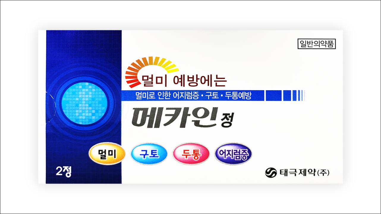 멀미약 메카인정(Mecain Tab.)에 대해서 알아보겠습니다. 멀미 예방약으로 의사의 처방전이 없어도 약국에서 구입이 가능한 일반 의약품입니다. 항구토 및 항현훈 작용을 나타내어 멀미로 인한 구역, 구토, 두통예방 및 어지러움증을 완화시키는 약입니다.