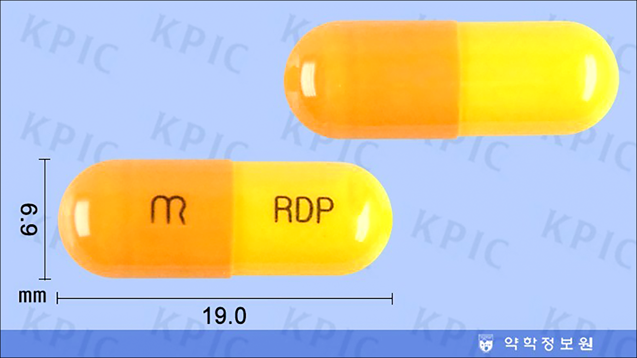 | 성상 | 황색 분말이 들어있는 상부 연등색 하부 담황색 경질 캅셀제 |