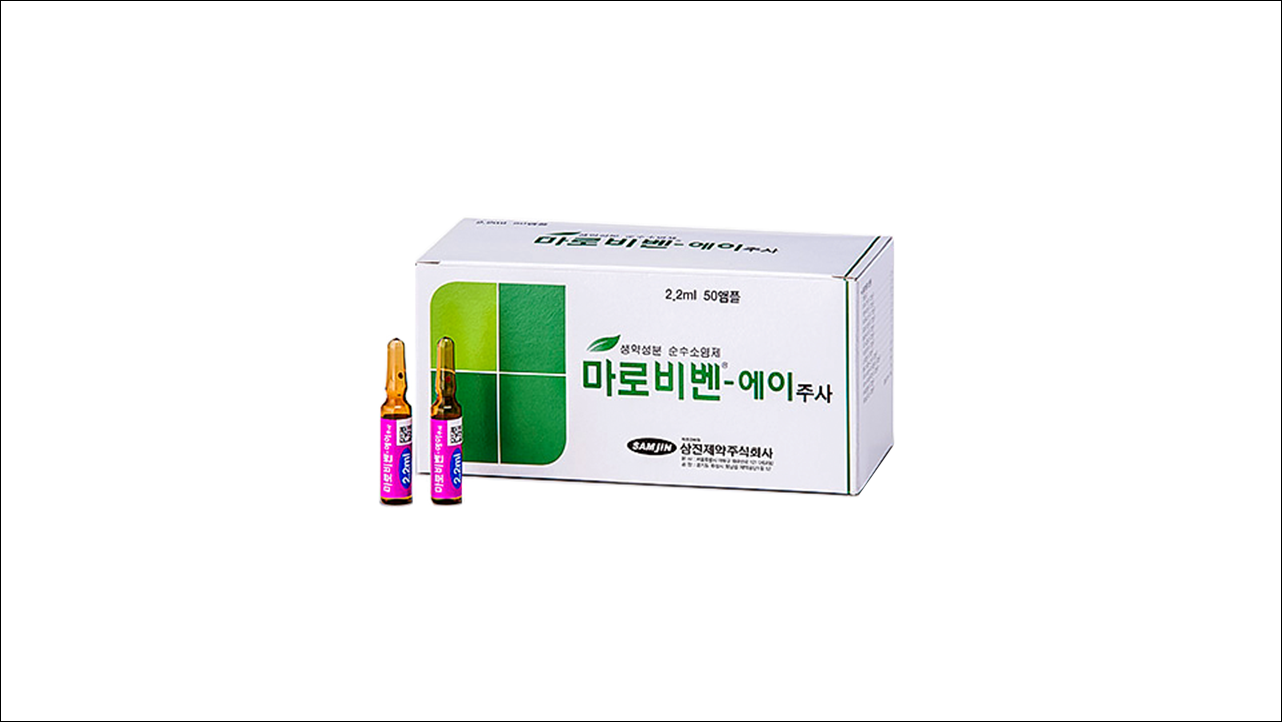 소염 주사제 마로비벤에이주사(Marobiven-A Inj.)에 대해서 알아보겠습니다. 생약성분의 주사제로 의사의 처방이 있어야 투여가 가능한 전문 의약품입니다. 10가지 생약성분이 복합 처방된 항염, 항부종, 함삼출 효과를 가진 소염 주사제(생약성분 순수소염제)입니다.