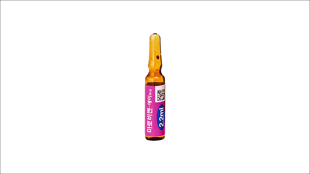성상 : 무색투명한 액체가 충진 된 갈색 앰플제입니다.
